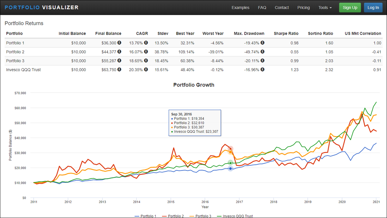 Portfolio Visualizer 장기투자전략 최고 수익률