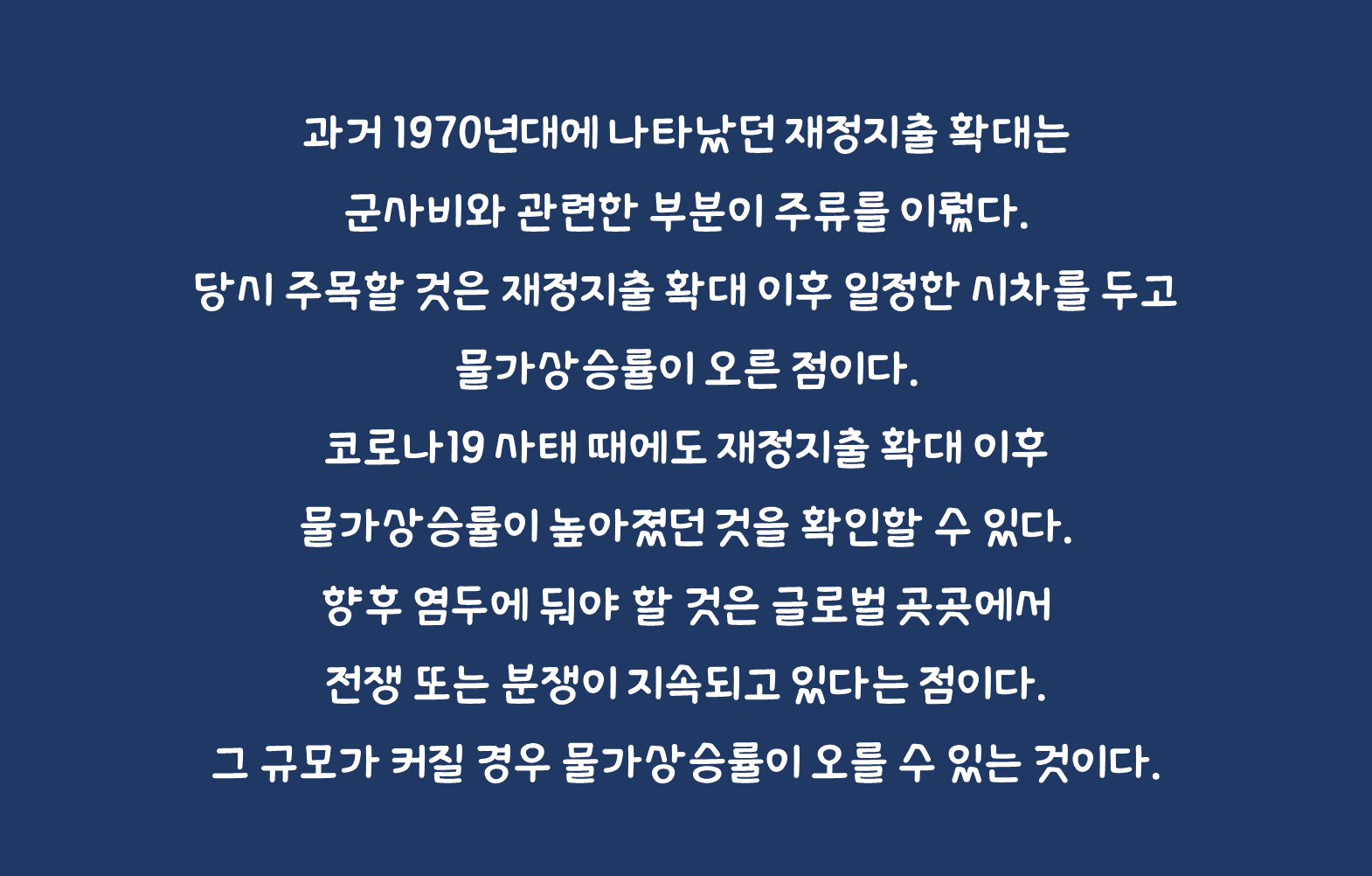 ✅ 군사비 관련 재정지출이 예상 외로 커진다면 이는 인플레이션 우려 재부각으로 나타날 수도