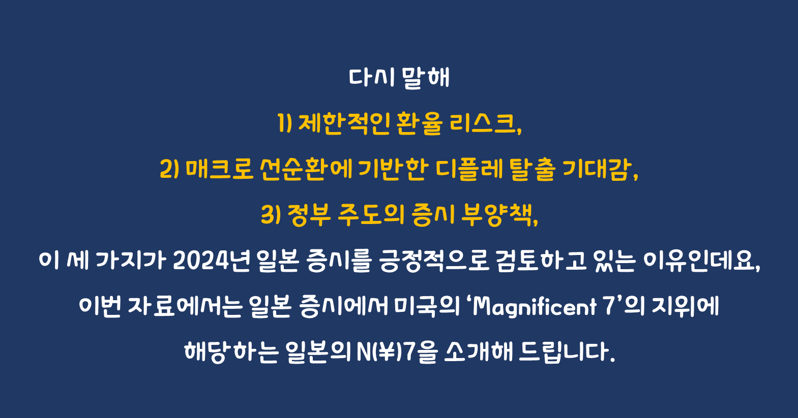 ✅ 미국에 M7이 있다면 일본에서는 N(¥)7에 주목: 2024년 일본 증시 주안점