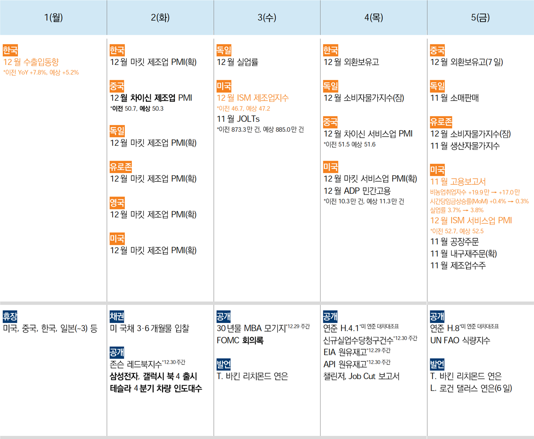 1/05(금) 미국 12월 고용보고서, 12월 ISM 서비스업 PMI