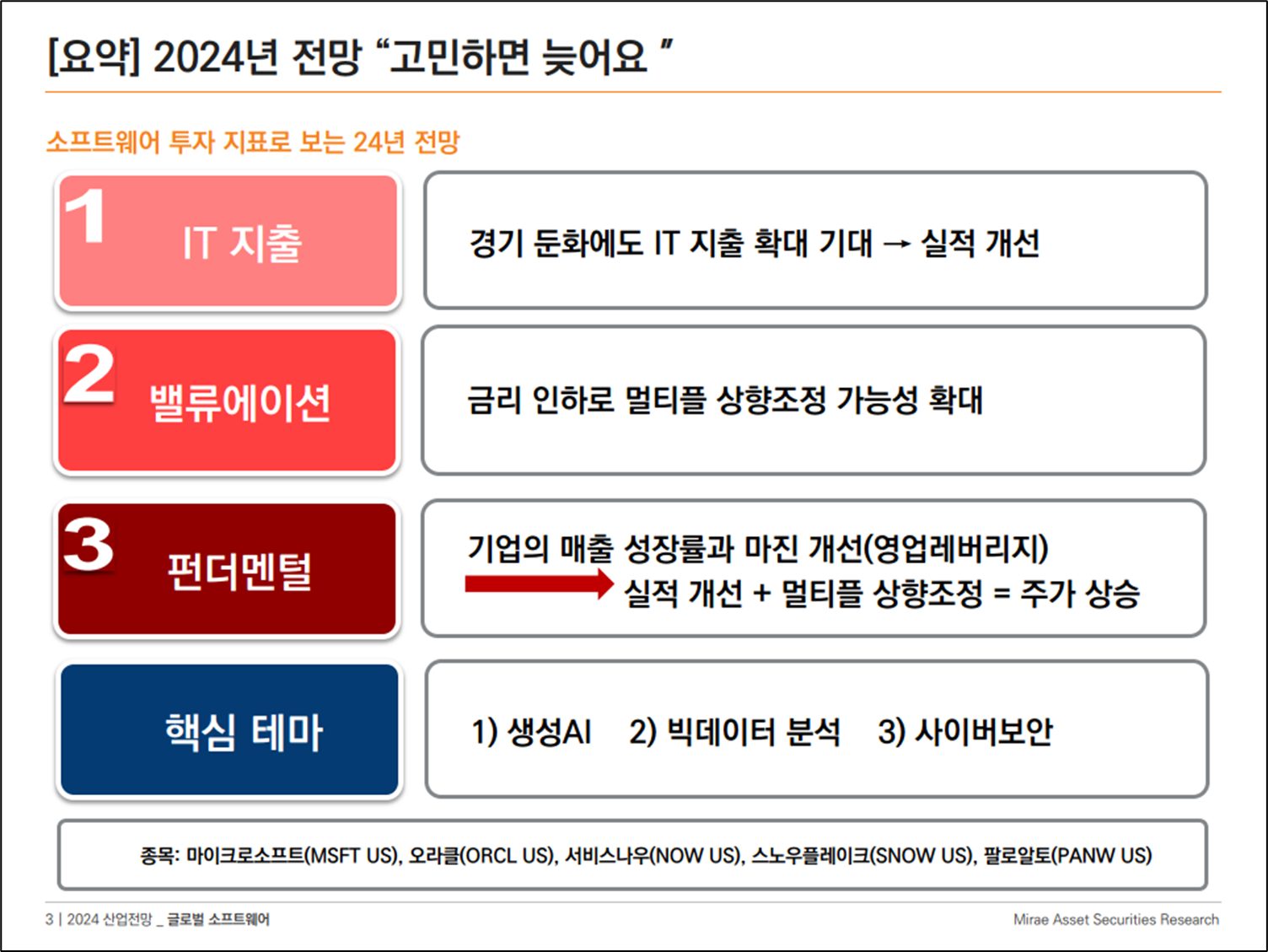 미래에셋 [2024 Outlook] 글로벌 소프트웨어 24년 투자전략: 생성AI 실전편 “고민하면 늦어요”, 2024-01-10, 김수진