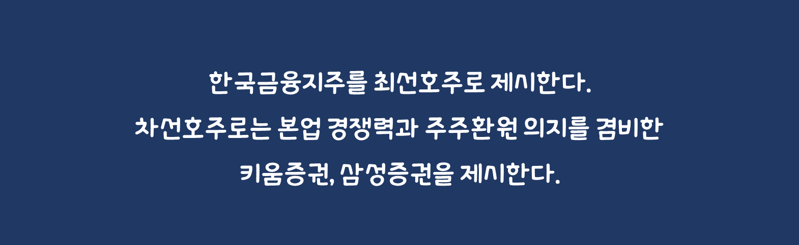 향후 실적은 PF로 인한 변동성이 크지 않을 것으로 추정하였다. 경상적인 영업환경으로의 회귀를 선반영하여 밸류에이션 매력이 높고 금융 계열사들을 통해 높은 이익창출이 가능한 한국금융지주를 최선호주로 제시한다. 차선호주로는 본업 경쟁력과 주주환원 의지를 겸비한 키움증권, 삼성증권을 제시한다.