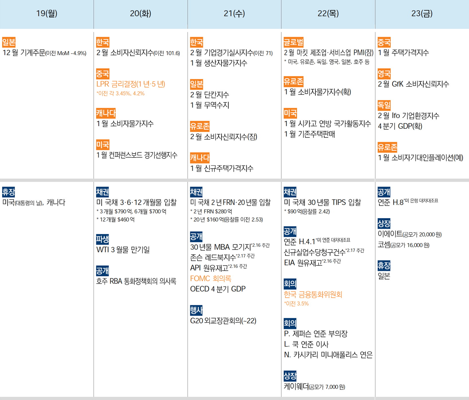 2/20(화) 중국 LPR 금리결정(1년, 5년)