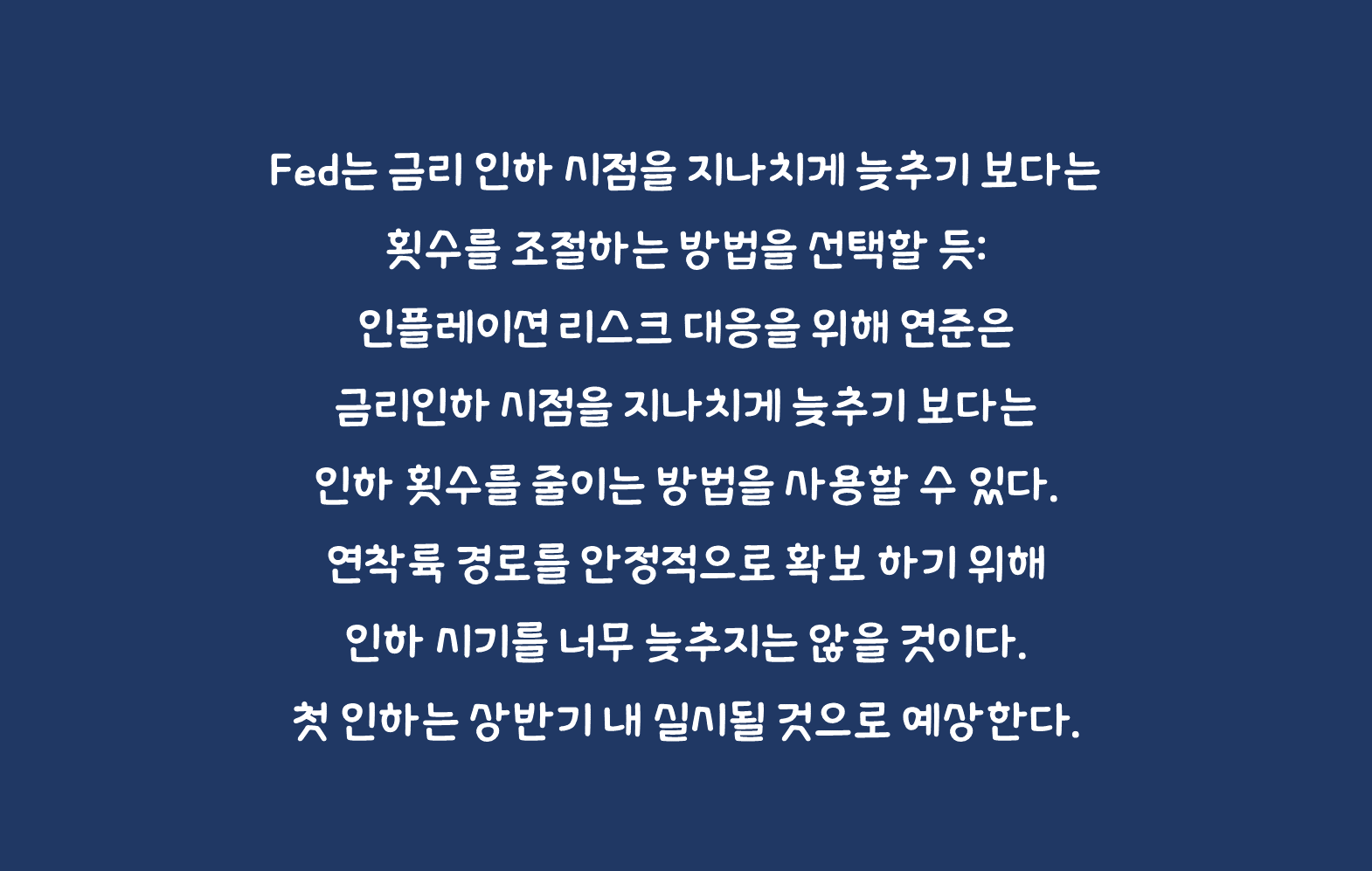 ✅ Fed는 금리 인하 시점을 지나치게 늦추기 보다는 횟수를 조절하는 방법을 선택할 듯
