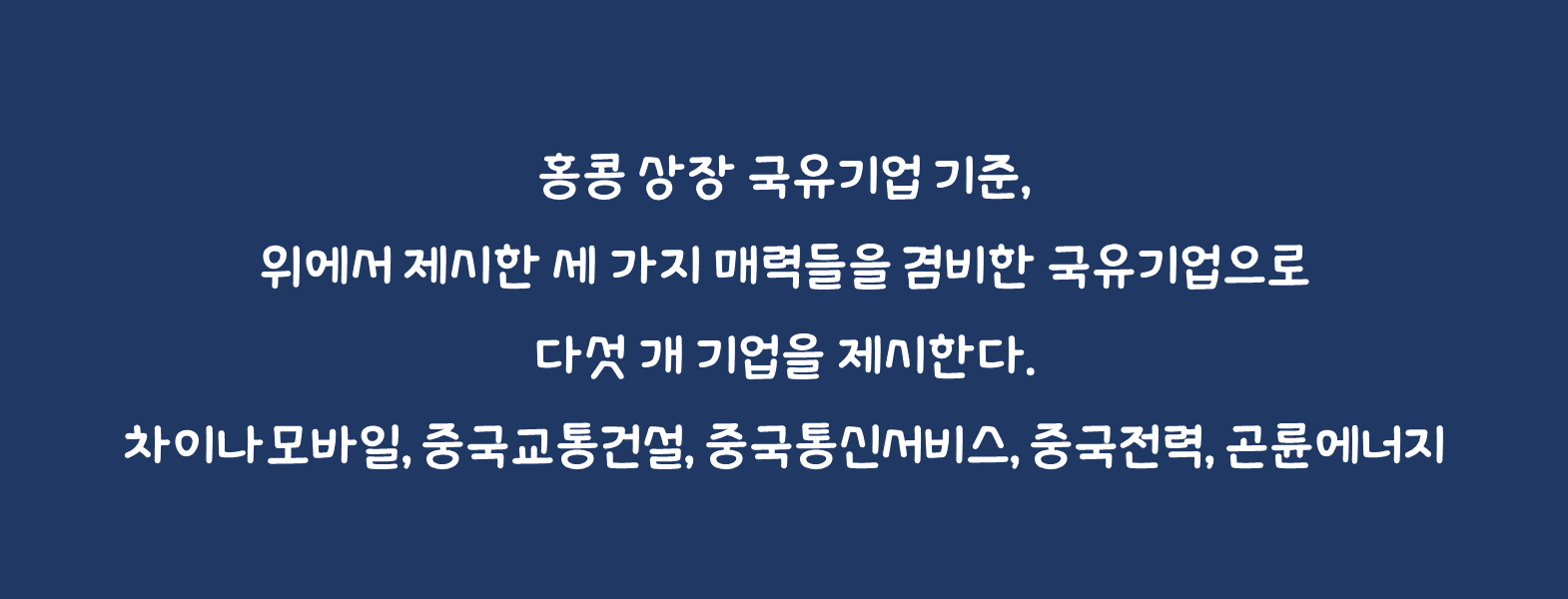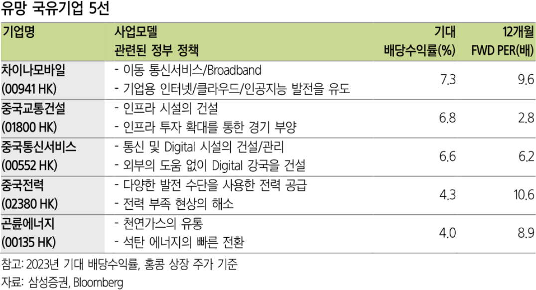 ✅사업모델/배당/Valuation을 고려한 홍콩 상장 국유기업 5選을 제시