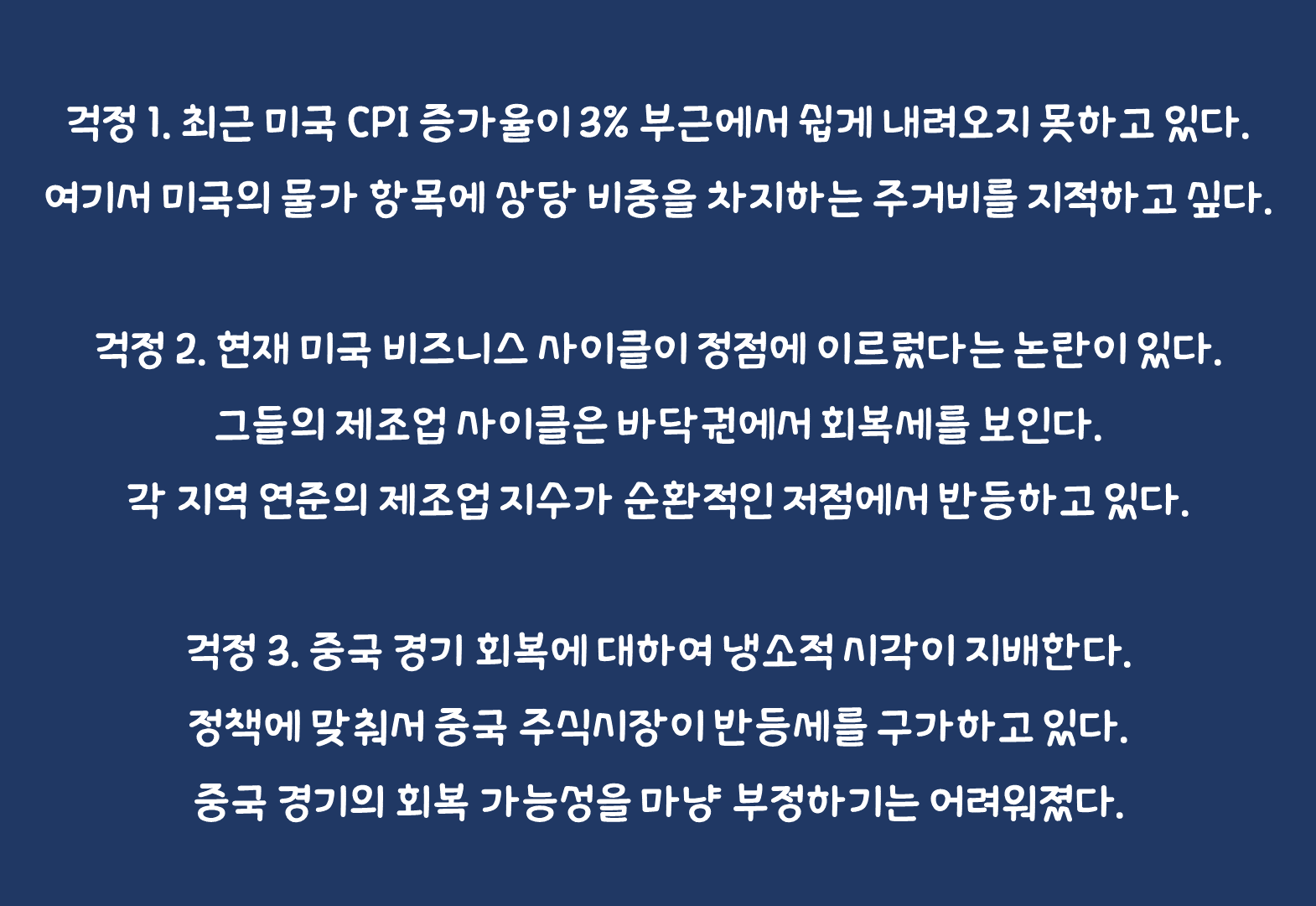 ✅최근 CP 증가율 3% 체류, 미국 비즈니스 사이클 정점론, 중국 경기 회복 의심 등 걱정 존재