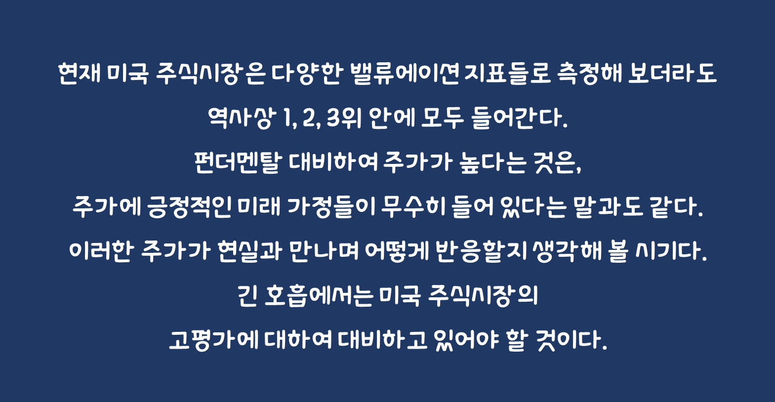 ✅긴 호흡에서는 미국 주식시장의 고평가에 대하여 대비하고 있어야 할 것