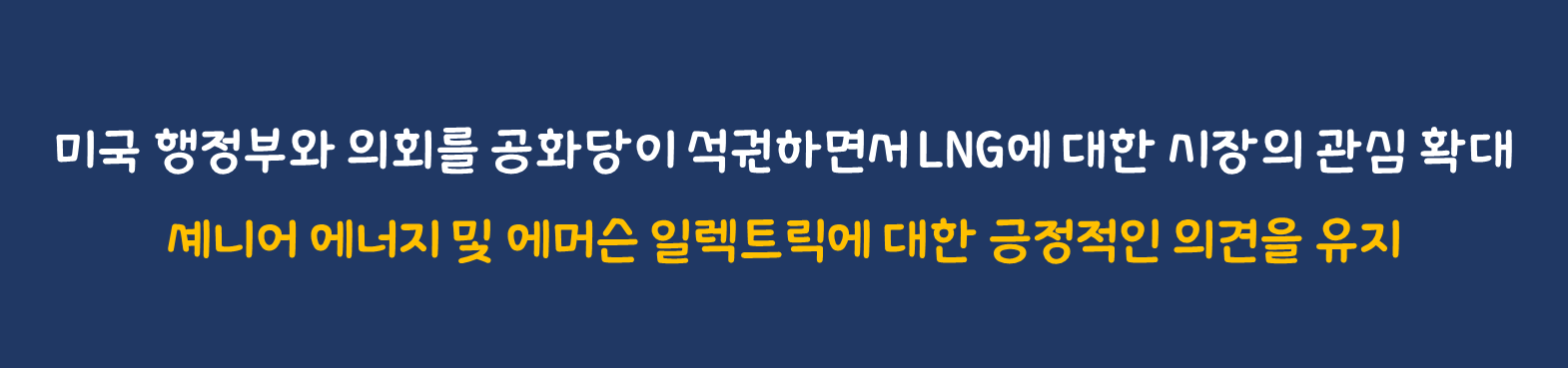 ✅미국 행정부와 의회를 공화당이 석권하면서 LNG에 대한 시장의 관심 확대