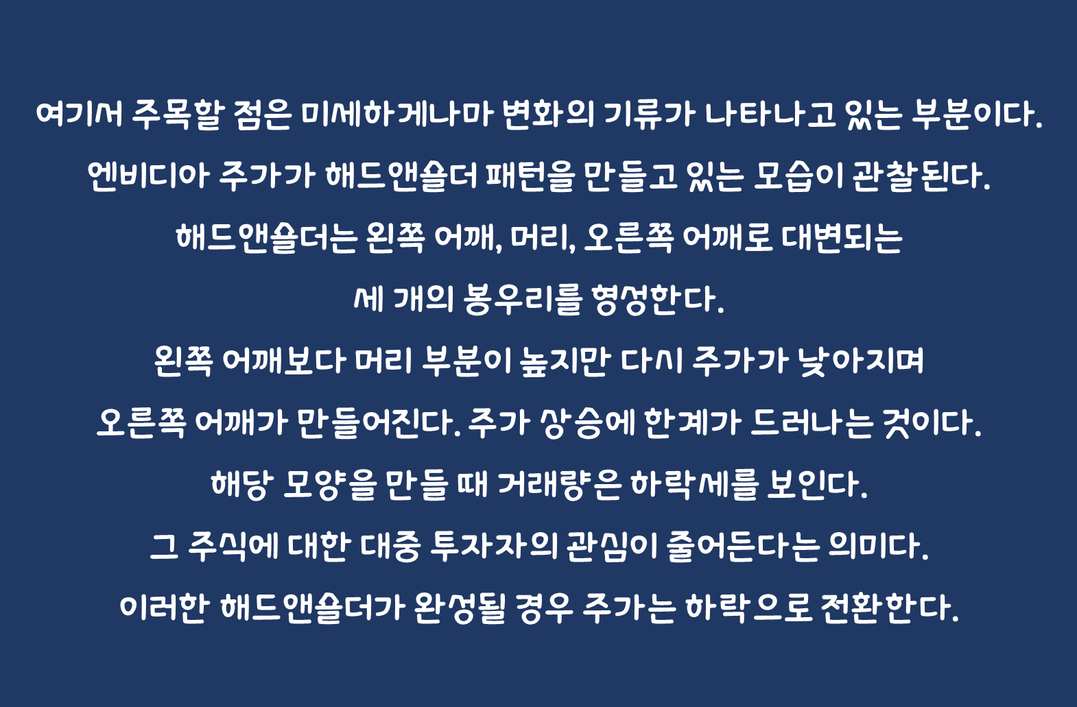 ✅엔비디아 주가의 해드앤숄더 패턴 형성 여부를 관찰하며 리스크 관리하는 것 바람직