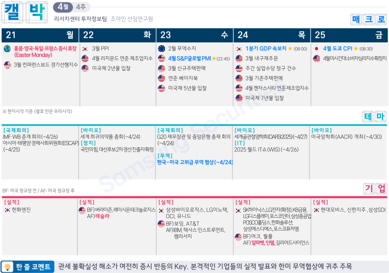 | 삼성증권 [글로벌 주간 추천종목] (4월 3주 차): 일부 안도 국면 기대, 그래도 변동성 주의 (1) | 2025.04.24 |