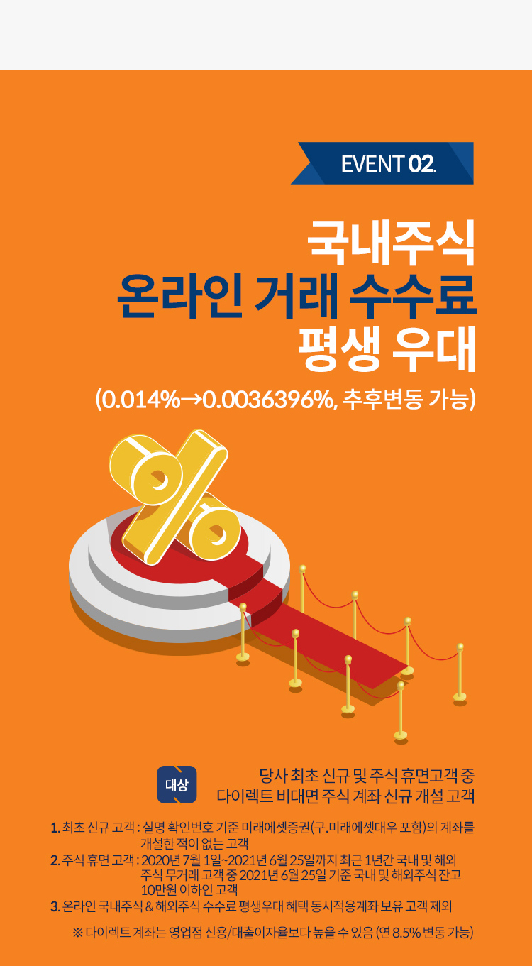 ※ 미래에셋증권 예탁자산 10억 원 이상, 온라인 수수료 0.01% 이상