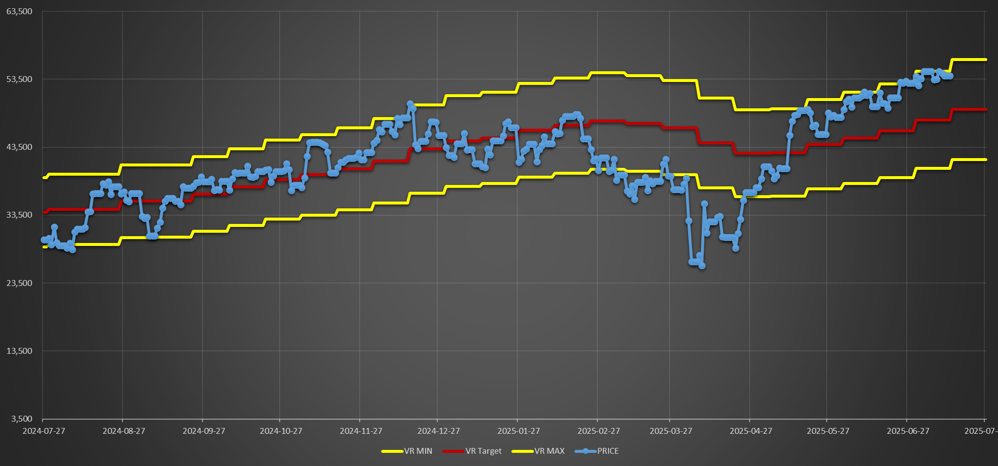 트럼프발 관세 이슈로 촉발된 폭랑장을 뒤로하고 지수는 언제 그랬냐는듯 전고점을 돌파하고 있습니다. 여기에 맞추어 VR는 상단폭에 닿아 매도를 시작하고 있습니다. 늘 그래왔듯 계획대로 계속 진행하겠습니다.