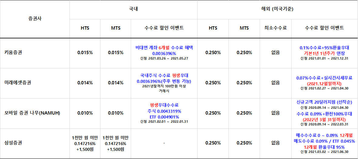 | 4대 증권사 주식거래 수수료 비교 & 이벤트 정리 (2021.05) (0) | 2021.05.02 |