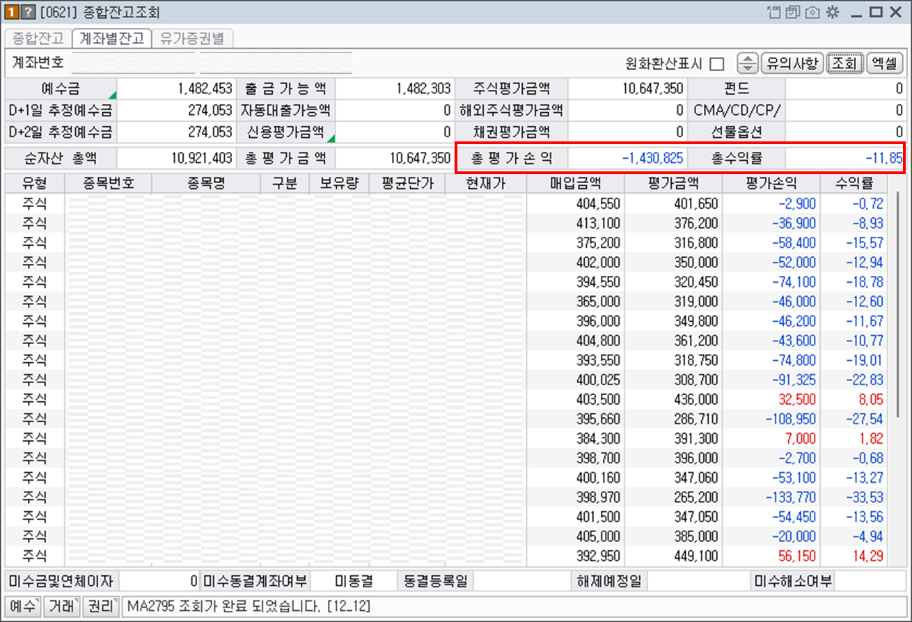 5) 수익률은 지난달 -7.51%에서 이번 달 -11.85% 기록 중이네요.