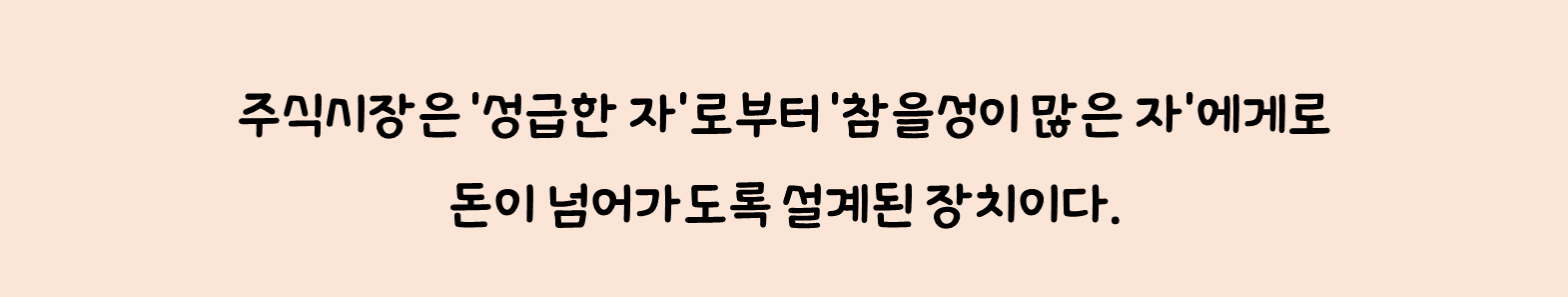 주식시장은 '성급한 자'로부터 '참을성이 많은 자'에게로 돈이 넘어가도록 설계된 장치이다.