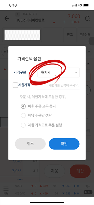 가격 선택 옵션에서 '현재가' 선택해 주세요