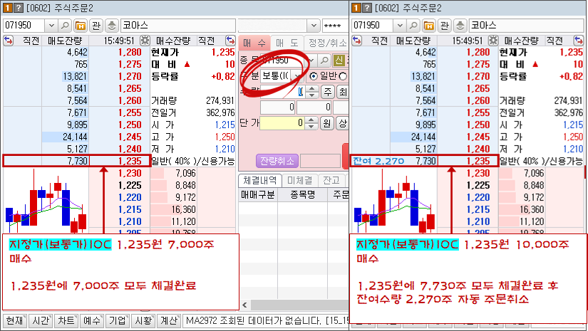 지정가(보통) IOC 주문
