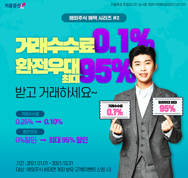 2) 해외주식에서는 키움증권의 95% 환율우대(기본 1년 + 추가 1년) 챙겨가면 좋을 것 같습니다!