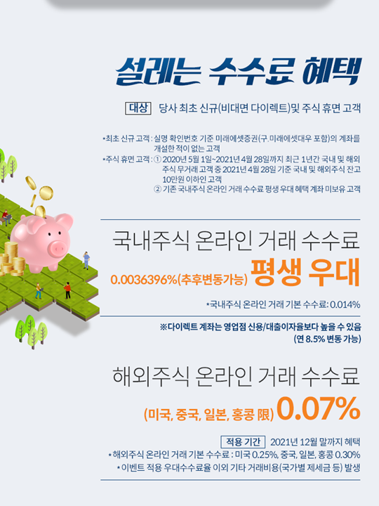 ※ 미래에셋증권 예탁자산 10억 원 이상, 온라인 수수료 0.01% 이상