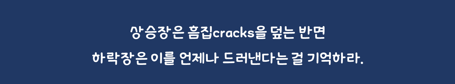 상승장은 흠집 cracks을 덮는 반면 하락장은 이를 언제나 드러낸다는 걸 기억하라. 그러나 흠집이 언제나 거기 남아 있다는 사실은 달라지지 않는다. 이는 마치 한쪽 면에서 바라보면 웃는 얼굴이 보이지만 다른 쪽 면에서 보면 심술궂은 얼굴이 보이는 그림과도 같다. 이런 변화는 그림 그 자체에서가 아니라 그걸 바라보는 우리의 시각에서 나온다. 주식시장이란 현재 시점에서 미래 가치를 뛰어나게 나타내어 보여주는 곳이다. 이 점을 절대 과소평가해선 안 된다. 시장은 6~12개월가량의 시간을 두고 투자자 전체가 실제 세상에서 일어나리라고 예측하는 대로 움직인다.