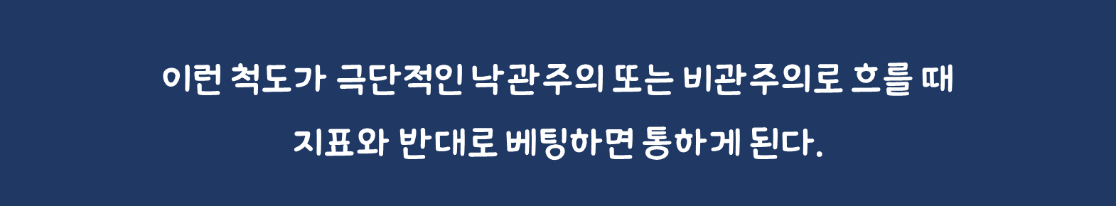 내가 챙겨보는 세 가지 가운데 하나는 상승장과 하락장의 역사적 패턴이다. 즉 상승장의 역사적 지속 기간과 상승폭, 하락장의 역사적 지속기간과 하락폭을 살펴본다. 지속 기간과 등락폭이 역사적 수치에 비해 길고 클 때 추세 전환의 확률이 현저히 커지게 된다. 다음으로는 투자자의 의견과 행동을 나타내는 척도를 챙겨본다. 풋/콜비율 pul/call ratio, 전문가 견해, 시장의 폭 breadth(주가 상승 종목 수와 하락 종목 수의 차이 옮긴이), 변동성, 뮤추얼펀드 현금 보유 비중, 헤지펀드에 대한 총 노출 및 순 노출 정도 등이다. 이런 척도가 극단적인 낙관주의 또는 비관주의로 흐를 때 지표와 반대로 베팅하면 통하게 된다. 마지막으로는 주가순자산 비율이나 잉여현금흐름 등과 같은 장기적 밸류에이션 지표를 살펴본다. 이런 지표가 정상 범위를 이탈할 때 이 역시 위험 또는 기회의 척도가 될 수 있다. 내 경험에 따르면 이 세 가지 요인이 상호확증을 보일 때 전환점이 가까워졌을 가능성이 높다. 날짜나 주, 달 등을 콕 집어내진 못해도 어느 분기쯤이 될지는 알아낼 수 있다.