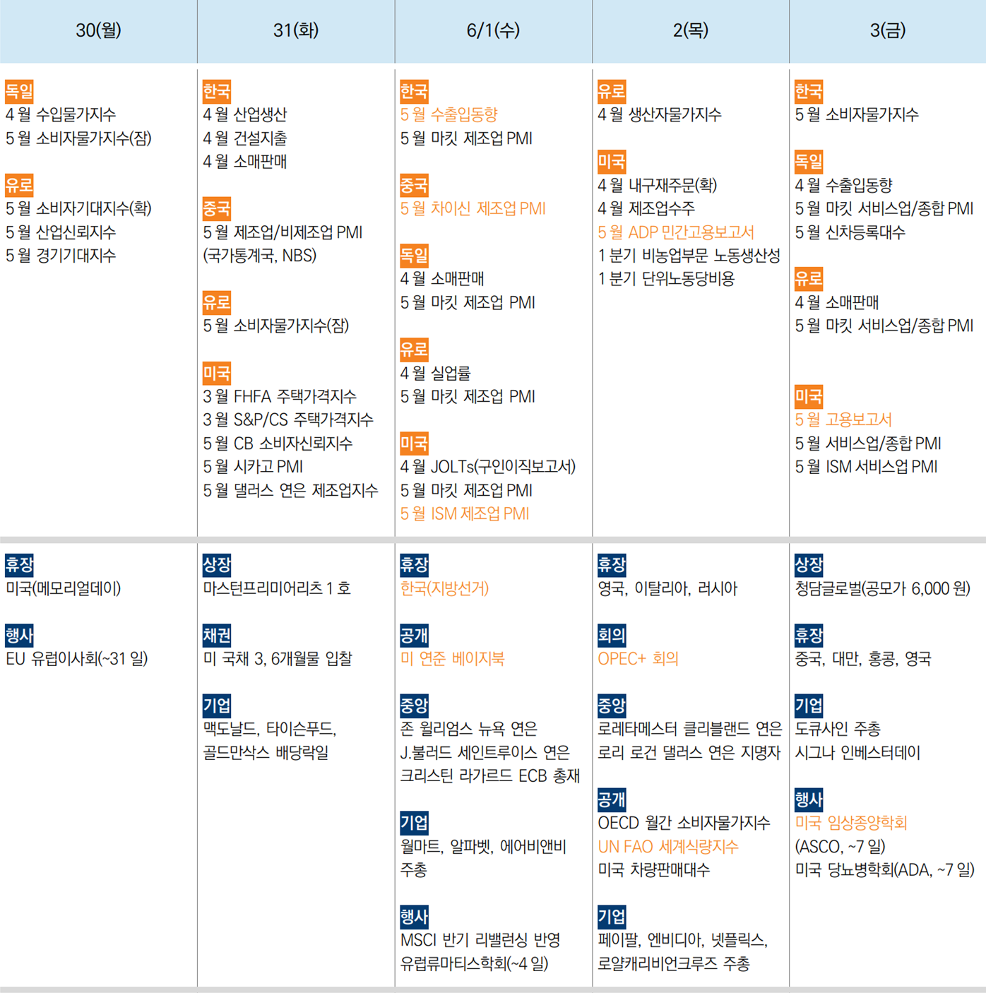 6/01(수) 중국 5월 차이신 제조업PMI, 미국 5월 ISM 제조업PMI, 미 연준 베이지북