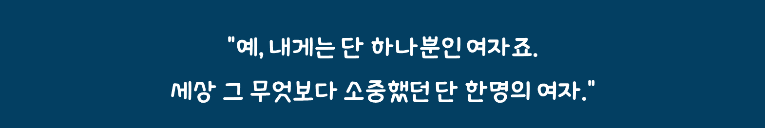 "예, 내게는 단 하나뿐인 여자죠. 세상 그 무엇보다 소중했던 단 한명의 여자."