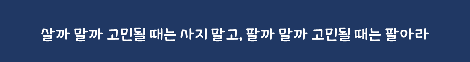 이럴 때 필자가 하는 말이 있다. “살까 말까 고민될 때는 사지 말고, 팔까 말까 고민될 때는 팔아라"다. 말장난 같지만 이 말처럼만 한다면 최소한 자신 없는 투자로 손실이 생기는 일은 없을 것이며, 조금 더 상승할 것 같은 미련 때문에 이미 확보한 수익을 챙기지 못하는 일은 발생하지 않을 것이다.