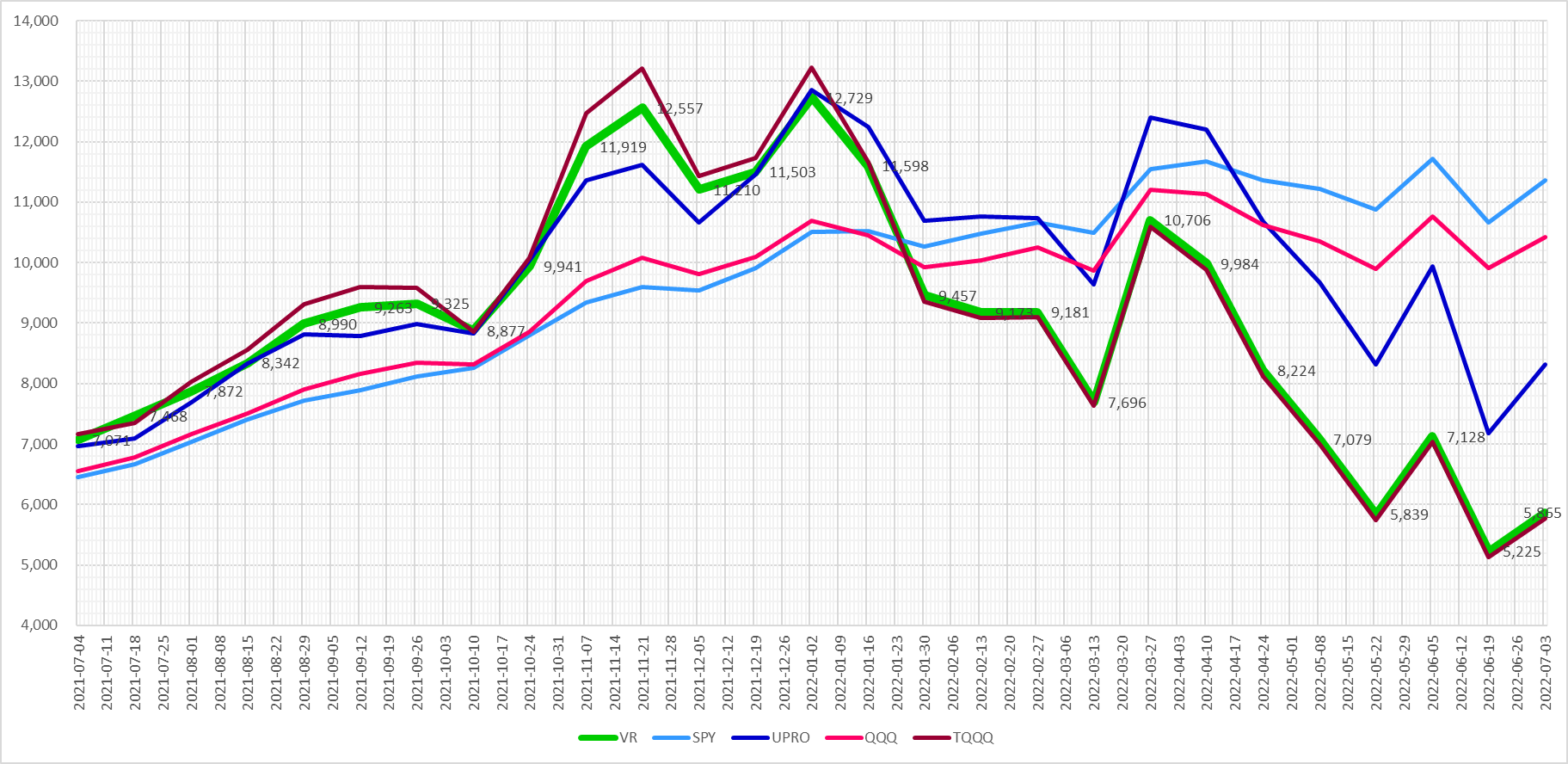 VR과 적립식 TQQQ는 여전히 유사한 움직임을 보여주고 있습니다.