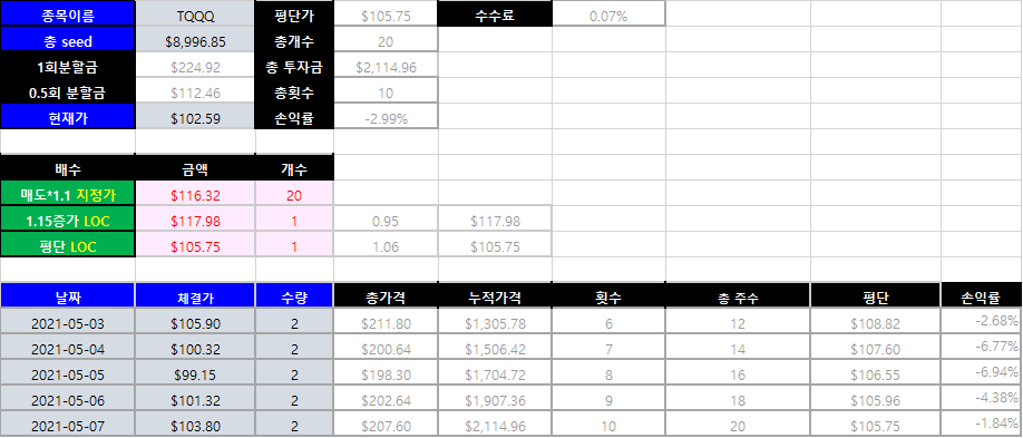 무한매수법 매매일지(21년 5월 첫째 주) #001