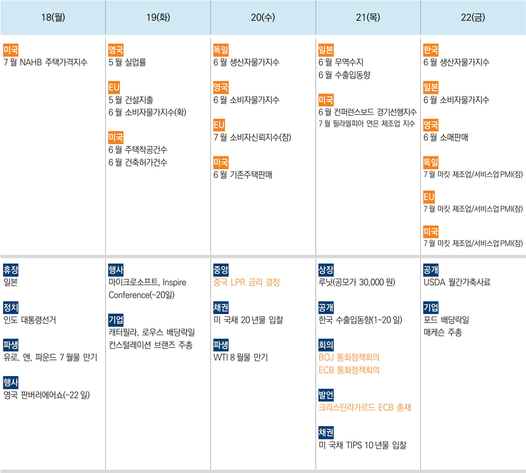 7/21(목) 미국 7월 필라델피아 연은 제조업 지수, ECB, BOJ 통화정책회의