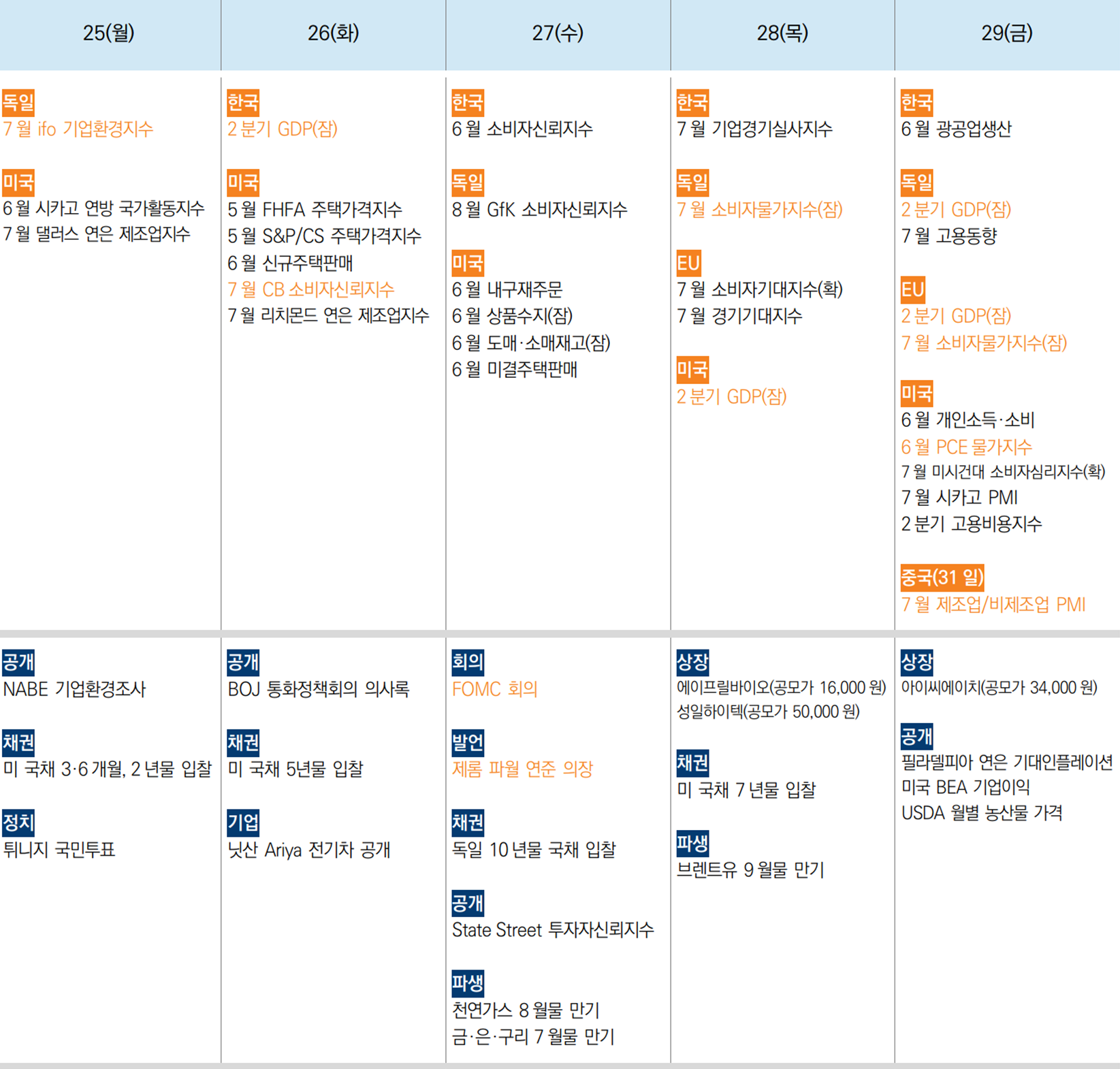 7/29(금) 미국 6월 PCE물가지수, 중국 7월 제조업/비제조업 PMI