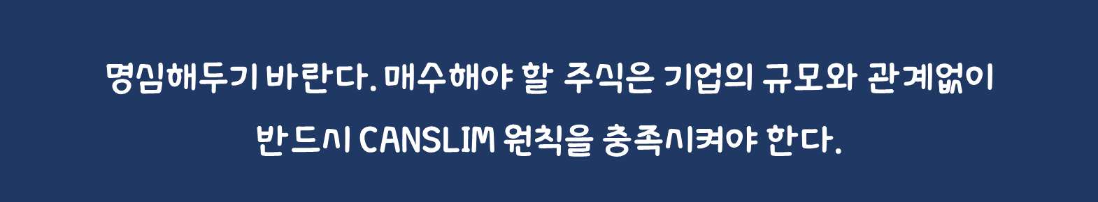 명심해두기 바란다. 매수해야 할 주식은 기업의 규모와 관계없이 반드시 CANSLIM 원칙을 충족시켜야 한다. 하지만 소형주는 주가가 오르든 내리든 변동성이 상당히 클 수 있다. 시장의 관심은 소형주에서 대형주로 옮아가기도 하고, 반대로 대형주에서 소형주로 쏠리기도 한다. 장내에서 자사주를 매수하는 기업, 그리고 경영진이 회사 지분을 많이 보유하고 있는 기업의 주식일수록 더 좋다고 할 수 있다.