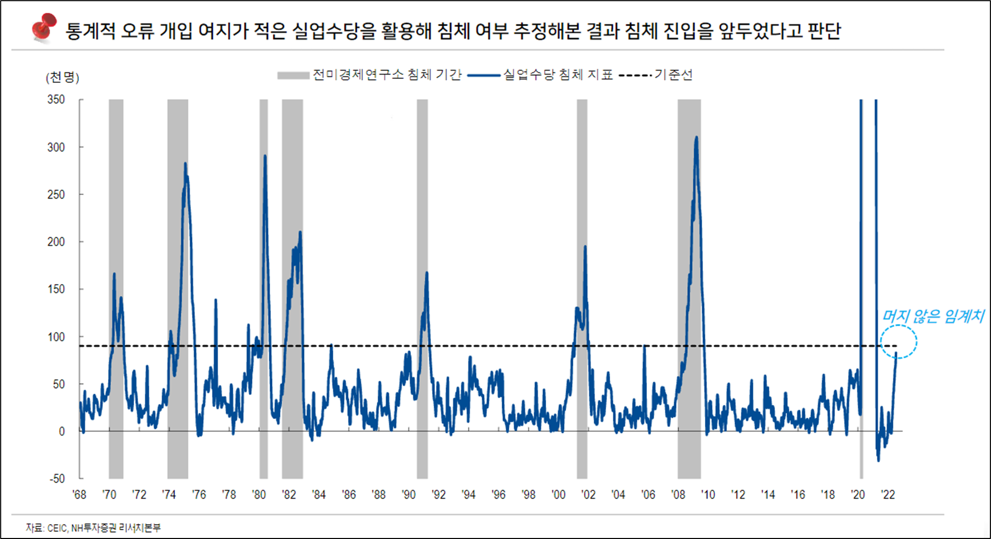 출처: NH투자증권 [차트 한 장, 채권시장] 실업수당이 판가름해주는 경기 침체 여부 / 2022.08.11박윤정
