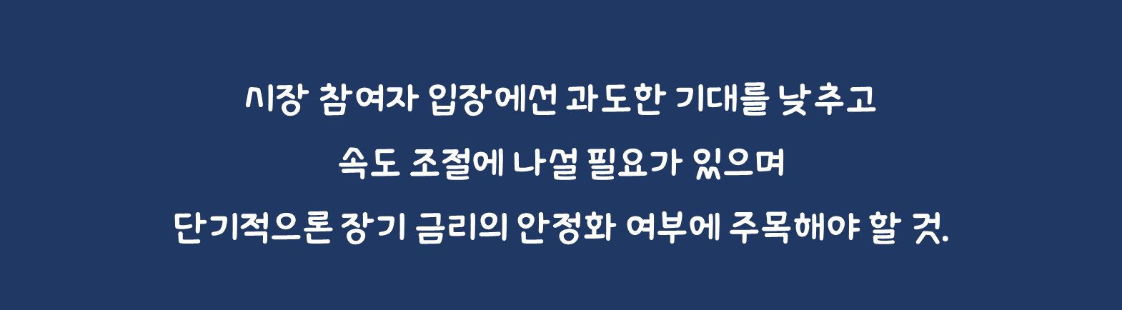 • 명확한 해결책을 갖지 못한 연준의 입장에선 시장의 기대를 더욱 잘 컨트롤해야 하는 상황에 봉착했다는 점에 주의해야 하며, 또한 시장 참여자 입장에선 과도한 기대를 낮추고 속도 조절에 나설 필요가 있으며 단기적으론 장기 금리의 안정화 여부에 주목해야 할 것.