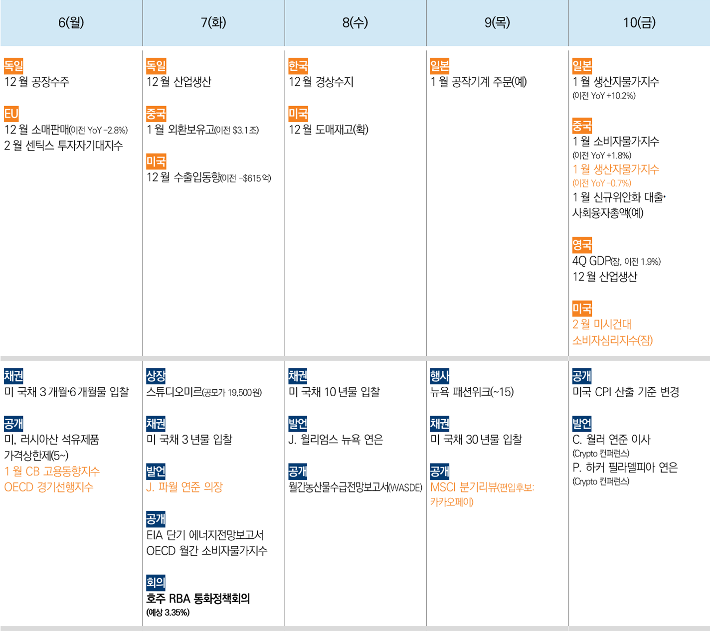 2/10(금) 중국 1월 생산자물가지수 미국 2월 미시건대 소비자심리지수