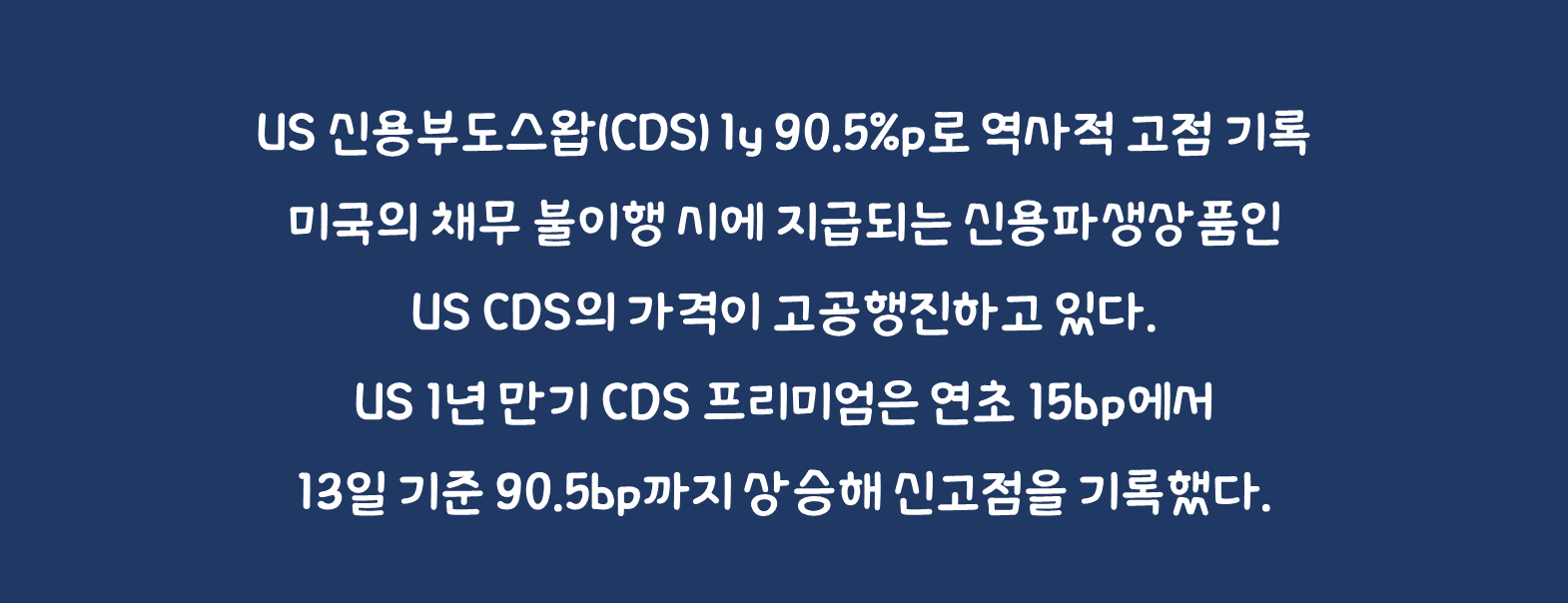 ■ US 신용부도스왑(CDS) 1y 90.5bp로 역사적 고점 기록, 5y는 42bp