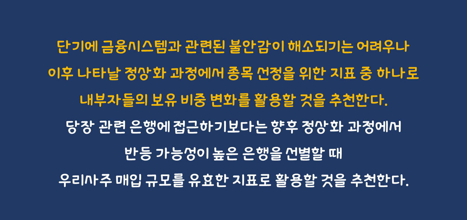 ■ 향후 정상화 과정에서 내부자들의 우리사주 매입 규모 상위 은행에 관심 가질 것을 추천