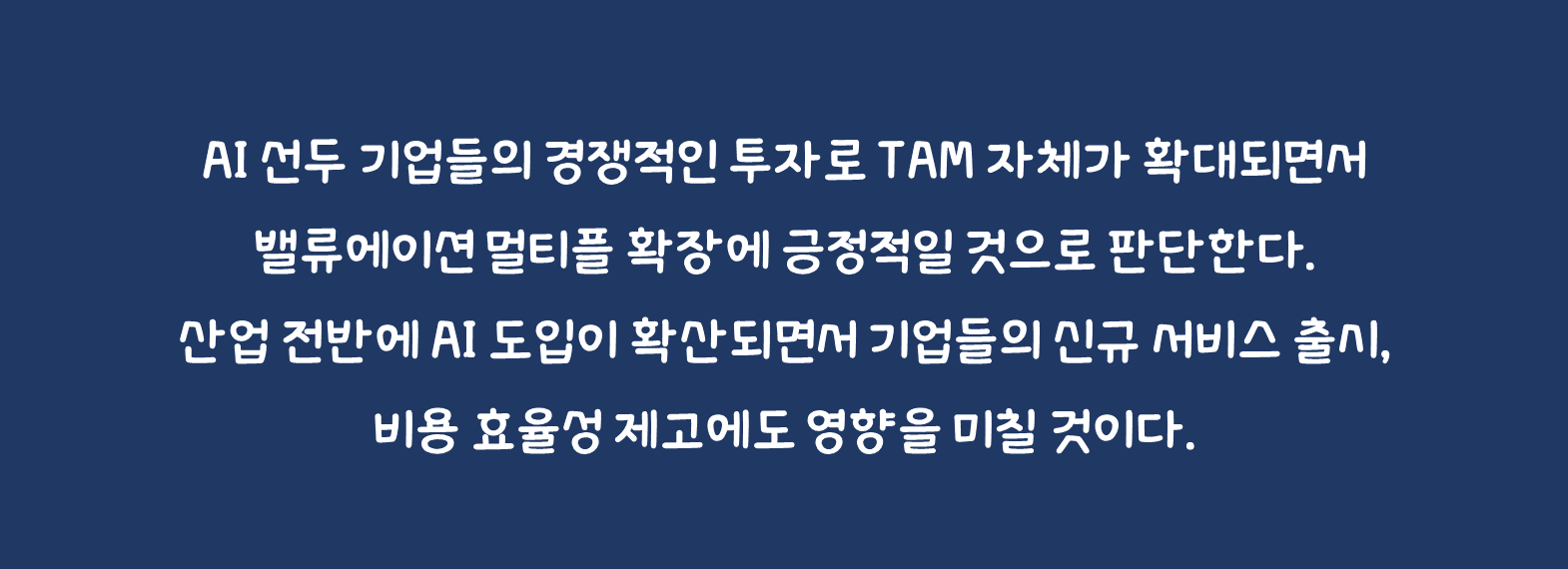 투자 아이디어 1) AI확산주도 2) 펀더멘털 대비 약한 주가회복 3) 견고한 시장지위
