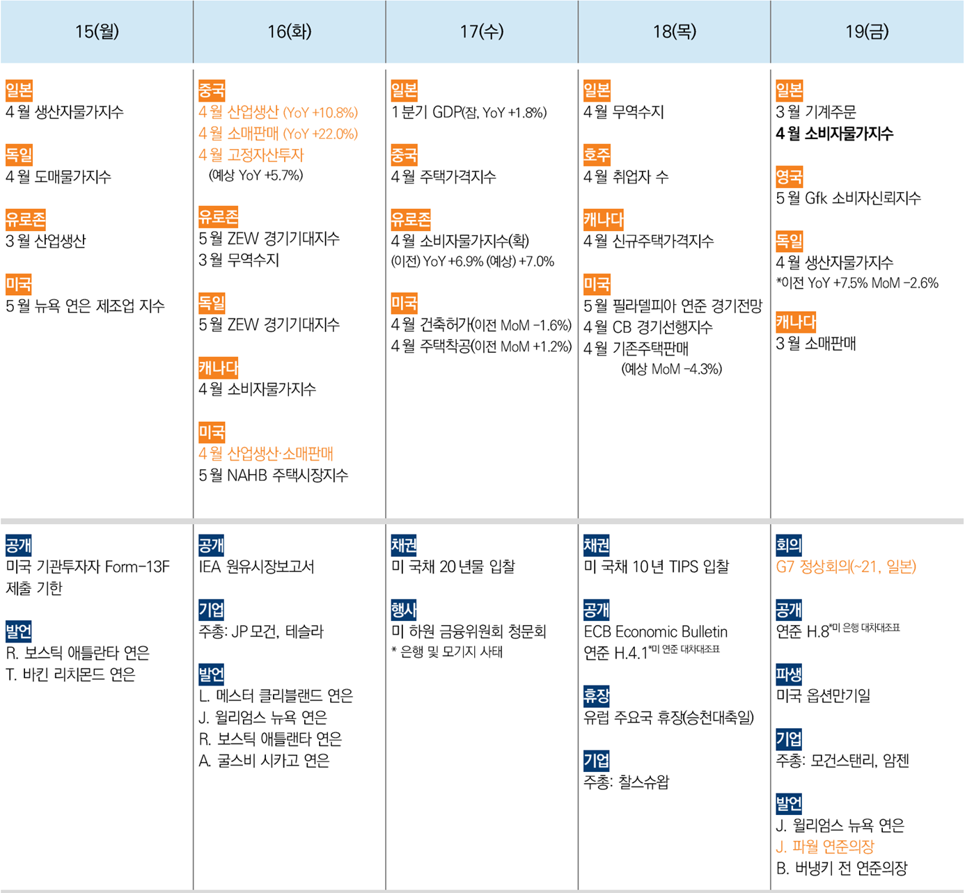 5/16(화) 미국 4월 산업생산, 소매판매, 중국 4월 산업생산, 소매판매
