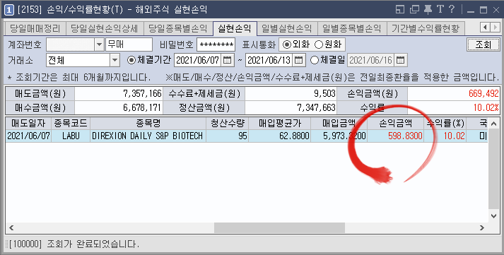 6) 6월 7일 월요일 밤 미국 새 알츠하이머 치매 치료제 20년 만에 첫 승인 소식에 힘입어 BIOTECH 3배 레버리지 LABU가 전 거래일 대비 13.21% 뛰어올랐습니다. 덕분에 몸집을 키우고 있던 LABU를 매도할 수 있었습니다.