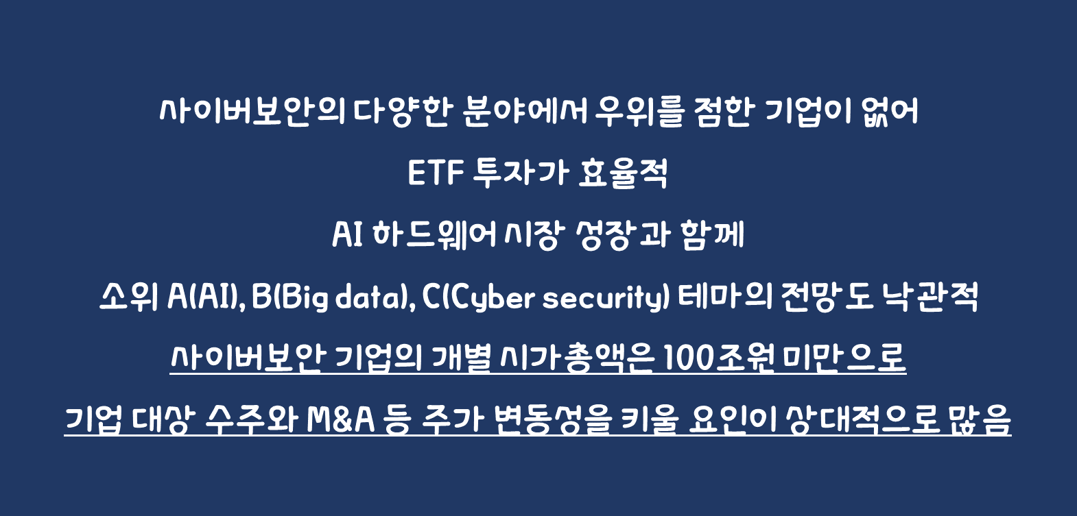 ■ 사이버보안의 다양한 분야에서 우위를 점한 기업이 없어 ETF 투자가 효율적