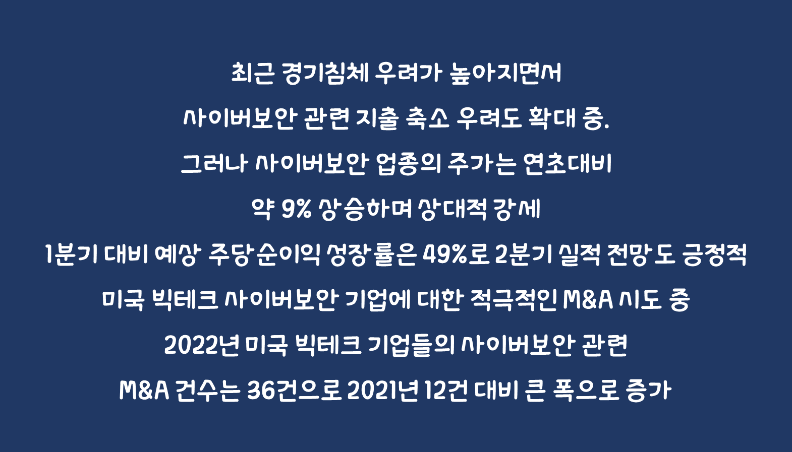 ■ 경기침체 우려에도 불구하고 사이버보안 업종의 상대적 강세