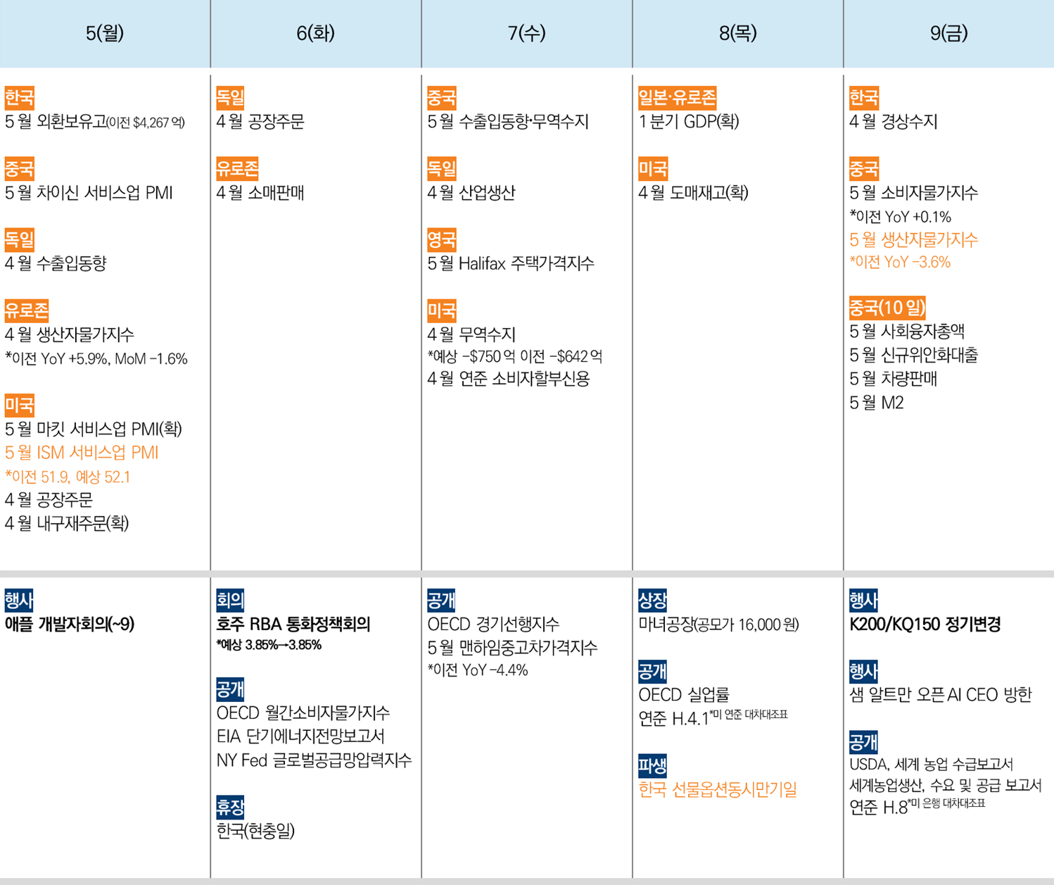 다음 주 주요경제지표 일정