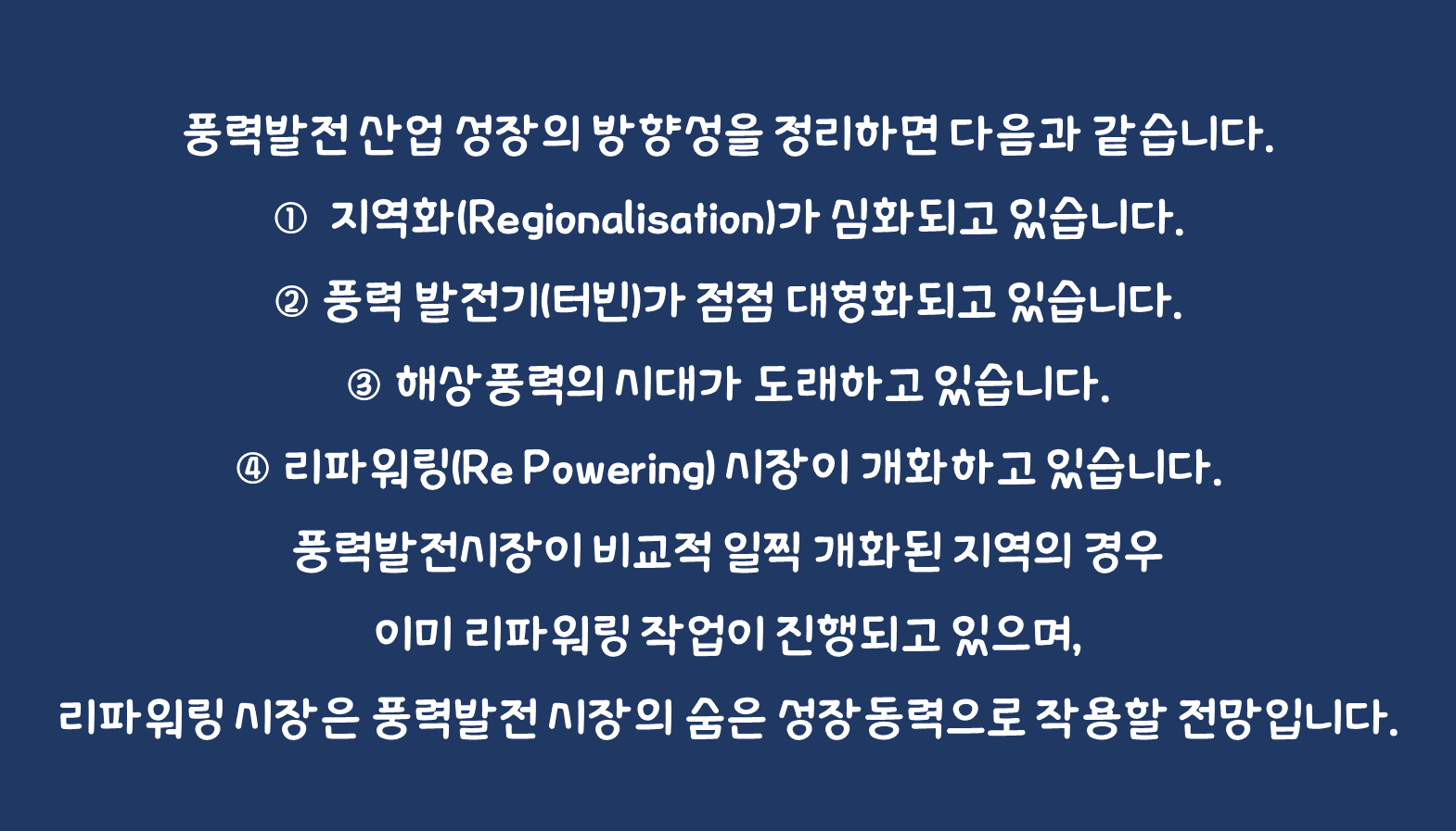 풍력발전 산업 성장의 방향성을 정리하면 다음과 같습니다.