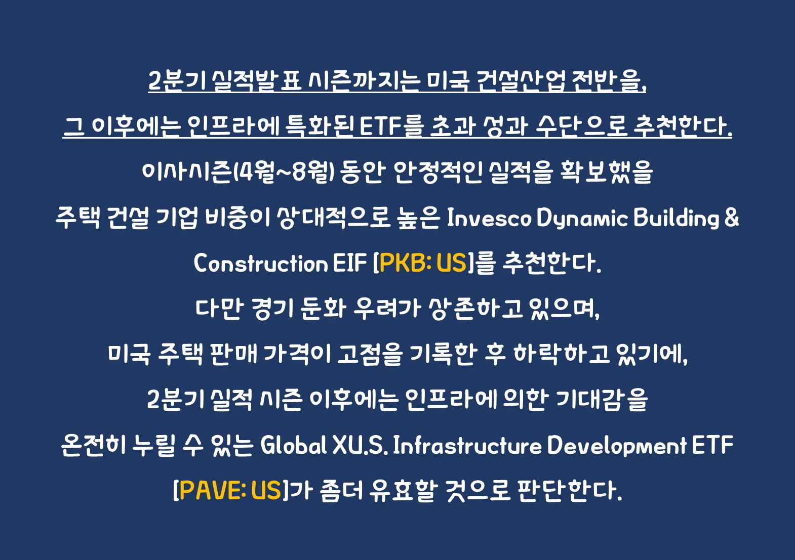 ■ 2분기 실적 시즌까지 미국 건설 산업 전반에 투자하는 전략 추천