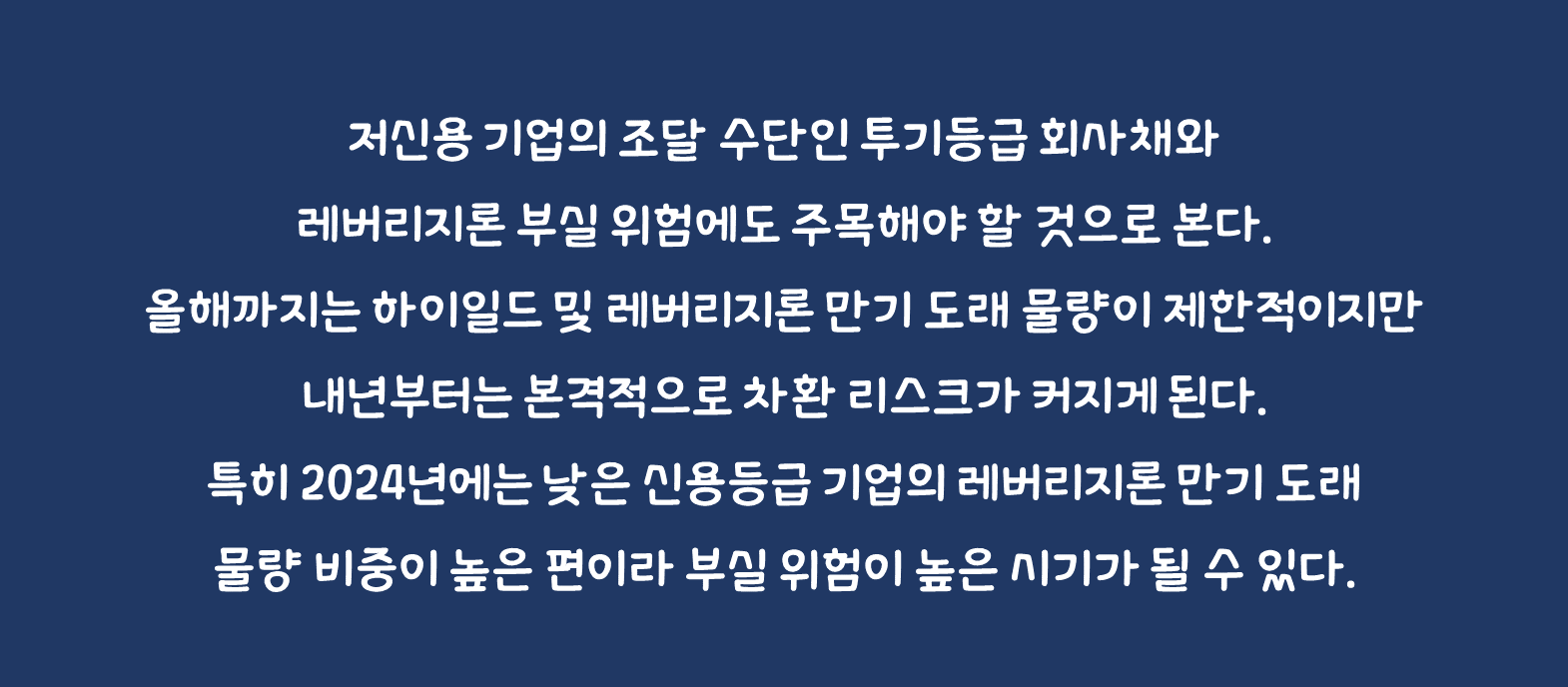 신용 긴축은 진행중. 저신용 기업의 조달 수단인 하이일드 및 레버리지론 부실에도 주목할 필요: