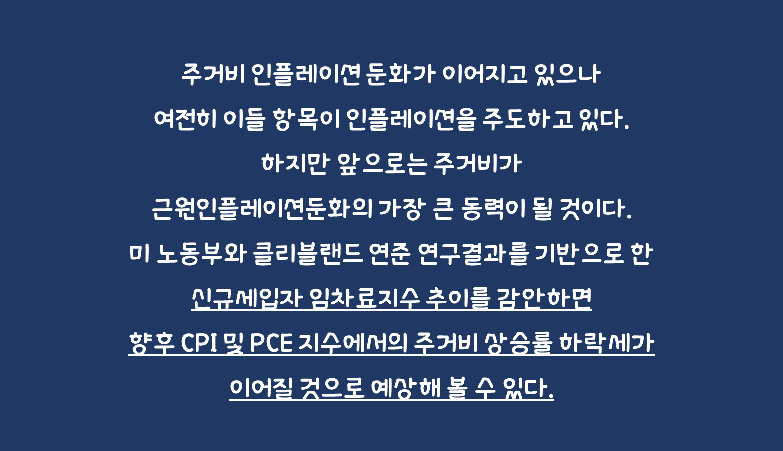 주거비 인플레이션은 2024년 말까지 금융위기 이후 평균 수준 부근까지 둔화되는 흐름: