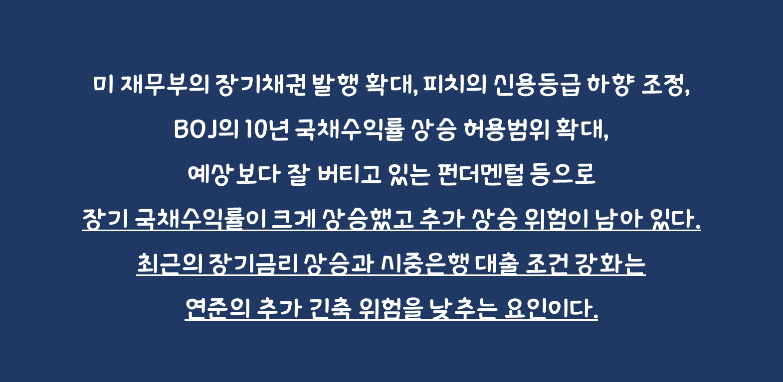 최근의 장기금리 상승, 시중은행 대출 조건 강화는 연준의 추가 긴축 위험을 낮추는 요인: