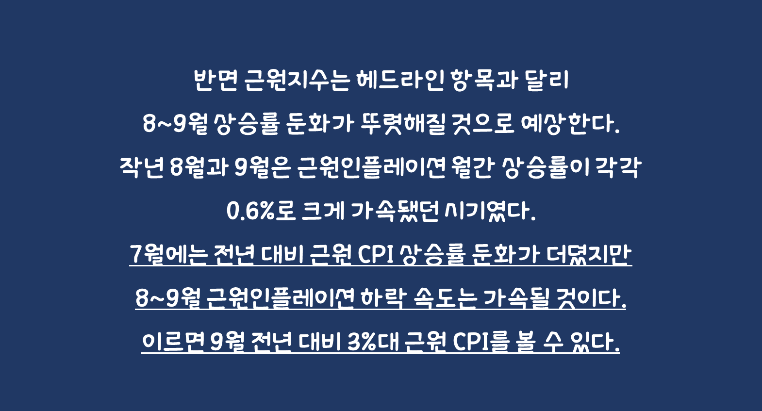8~9월은 근원인플레이션 둔화 가속 시기. 연준의 추가 긴축 우려 점차 줄어들 것: